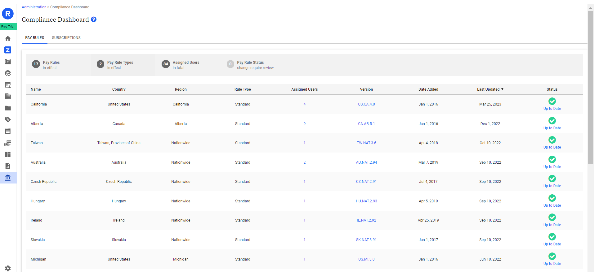 Our pre-configured pay rules library supports 375 labor rules in 147+ jurisdictions across 85+ countries. The pay rules library is constantly maintained by our in-house compliance experts to always stay on top of evolving labor laws.